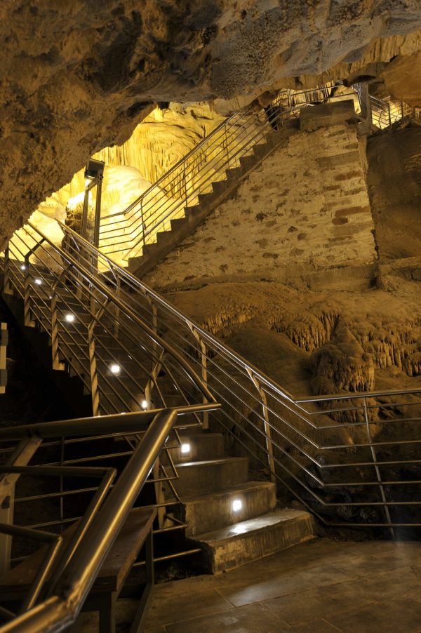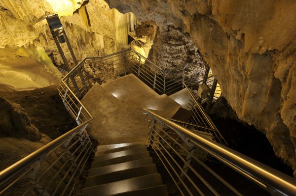 Η διεύρυνση της πορείας γίνεται όπου είναι δυνατό και με τρόπο ώστε να μην απαιτούνται σύνθετες κατασκευές αντιστήριξης και να μην επηρεάζεται ο διάκοσμος του σπηλαίου. Τα πλατύσκαλα έχουν και χώρο καθιστικού για ανάπαυση .