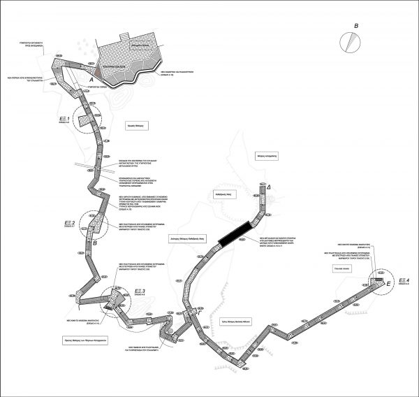 Η επέμβαση αφορά την αποκατάσταση του Υπάρχοντος Μονοπατιού , την διαπλάτυνση επικίνδυνων τμημάτων , την δημιουργία καθιστικών για στάση και επόπτευση του χώρου .