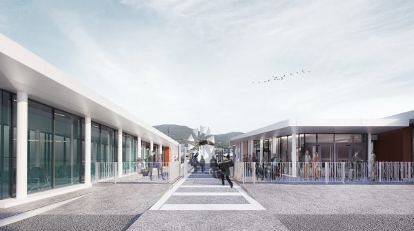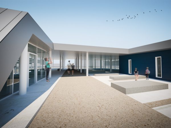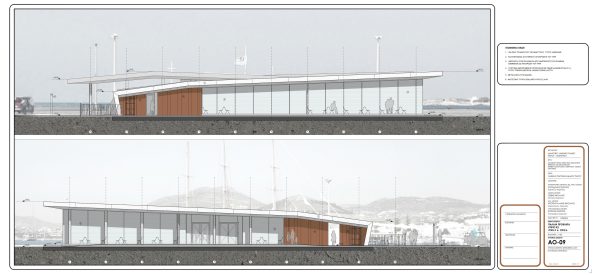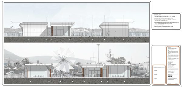 Η Αρχιτεκτονική πρόταση σε αυτό το παραθαλάσσιο τμήμα του νησιού που μεταφέρει επισκέπτες και κατοίκους υπαγόρευσε μια προσέγγιση που δεν θα ακολουθούσε τα παραδοσιακά πρότυπα αλλά θα προσέγγιζε με τη μορφή τις ανάγκες και τις χρήσεις ενός σύγχρονου λιμανιού με αυξημένη κίνηση.