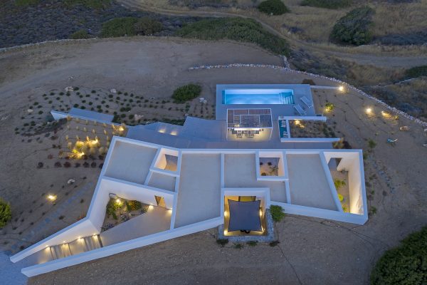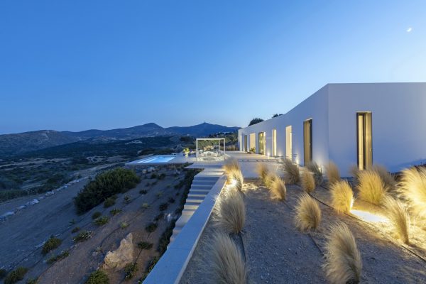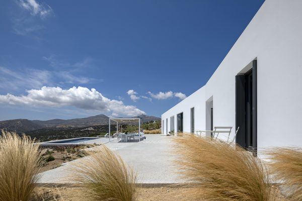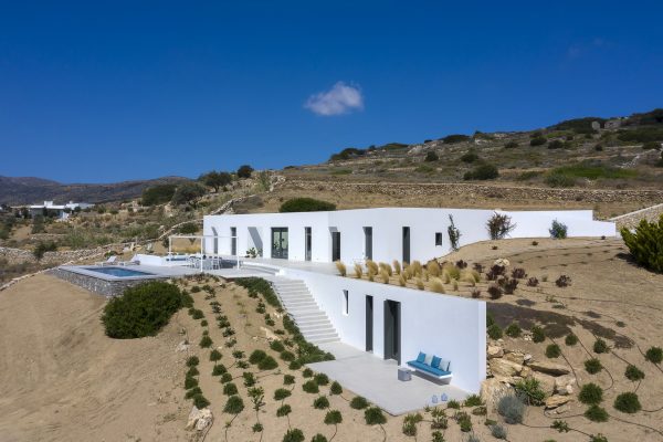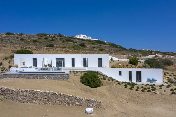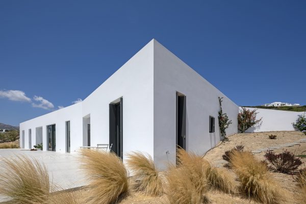 Το οικόπεδο βρίσκεται στη θέση Άγιος Γιάννης στην Δ.Κ. Κώστου, δήμος Πάρου. Έχει προσανατολισμό νοτιοανατολικό στη μεγάλη πλευρά, με θέα προς την θάλασσα και τον κόλπο της Νάξου. Το κτίριο ακουμπά στην πλαγιά του λόφου και προσαρμόζεται στις τοπογραφικές καμπύλες ακολουθώντας την μορφολογία του εδάφους: στην δυτική πλευρά είναι σχεδόν υπόσκαφο. Οι τεθλασμένοι τοίχοι παραπέμπουν στις πεζούλες που συναντάμε στις Κυκλάδες, συγκροτώντας ένα κέλυφος το οποίο διατηρεί ευνοϊκό μικροκλίμα σε κάθε καιρική συνθήκη.