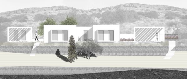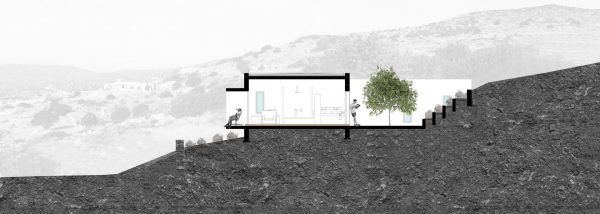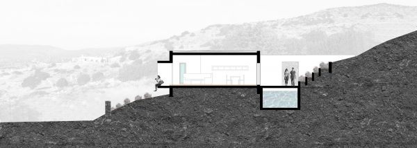 Το σύνολο της υλοποιημένης επέμβασης συνδιαλέγεται με το τοπίο και δημιουργεί χώρο για κατοίκηση. Το βασικό αντικείμενο της μελέτης είναι το «καδράρισμα» της θέας και η μετασκευή του κτιρίου σε μηχανή θέασης.Η κατοικία ακουμπά διακριτικά στο Τοπίο, το οποίο εξελίσσεται ανέπαφο, και οργανώνει τις οπτικές προς τη μεγάλη πλαγιά. Μία άσκηση αρχιτεκτονικού σχεδιασμού που μορφοποιεί αφαιρετικά την έννοια του κοιτάγματος ( της ματιάς) και γίνεται το ίδιο αντικείμενο θέασης.