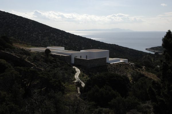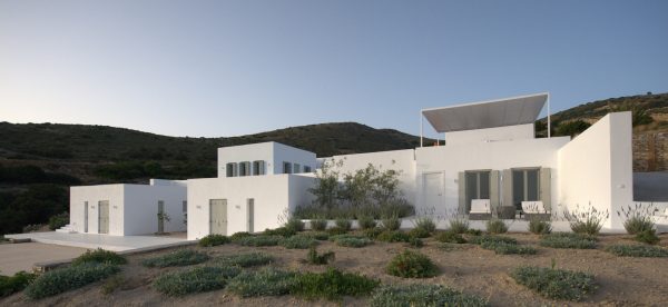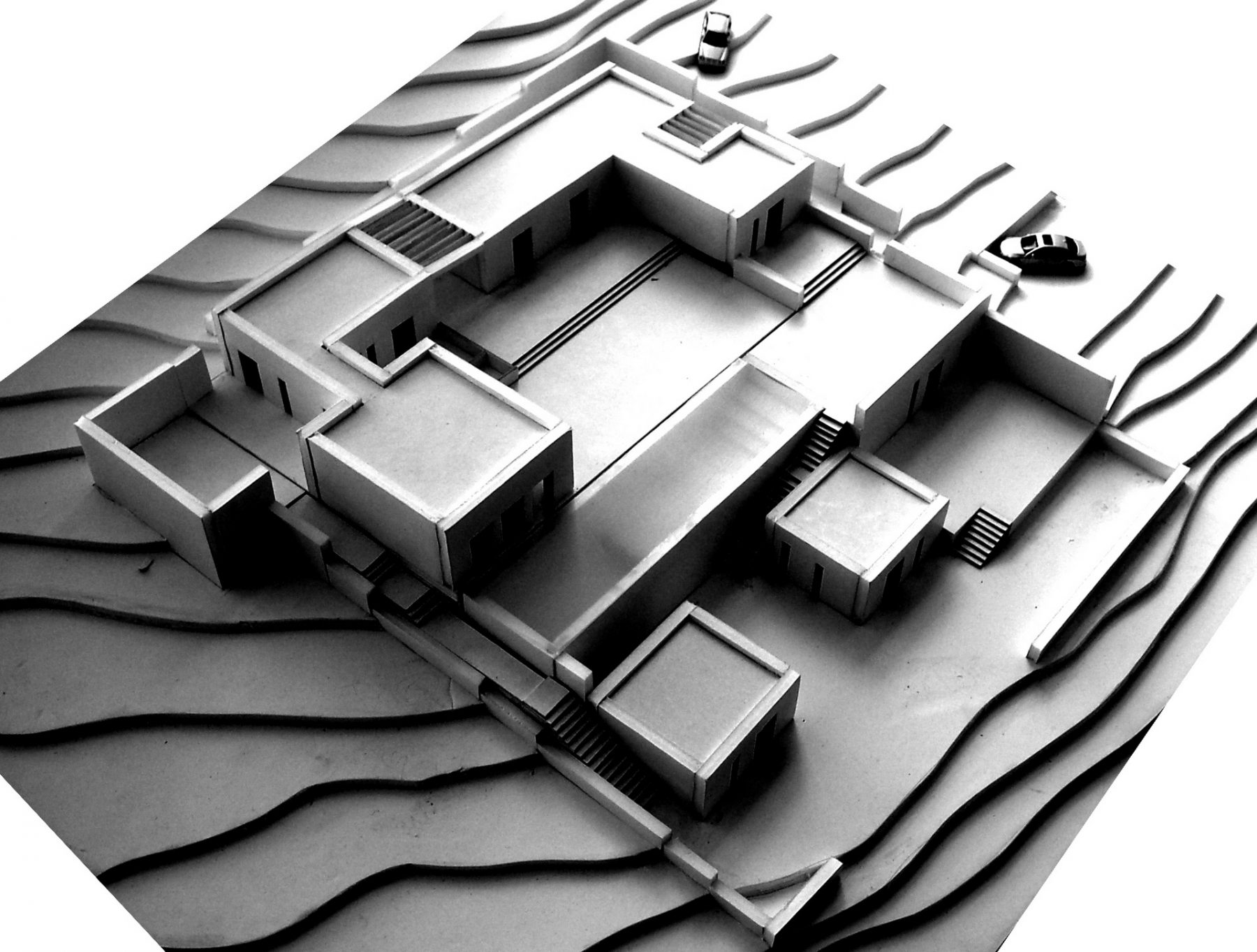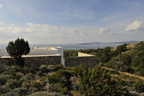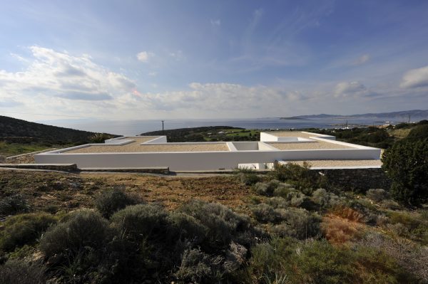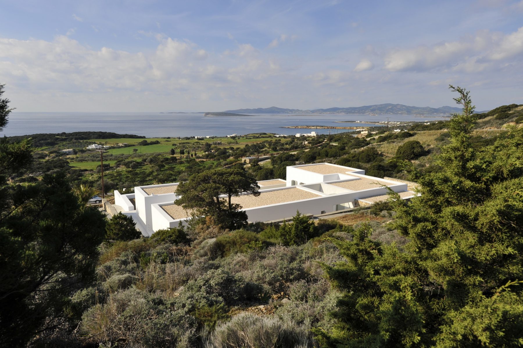The plot is located at the island of Paros in the Cyclades. It has orientation in the big side South-western with view to the sea. The project concerns a summer house with hostels and a pool. The place of the residence is to benefit of the view to the Aegean Sea. The houses volumes are placed on a Π shaped layout with a central courtyard as according to traditional prototypes. The central courtyard organises the operations, creating a central core in direct report to the uses around it. Using the elements of the Cycladic Architecture, we designed a building that is adjusted to the landscape, split in different levels. In this way the adaptation of the building to the landscape is harmonious and the volume of the central residence is the least possible. The building from the eastern side is almost entirely adjusted to the ground. The architecture is subjugated in the landscape and at the same time is using the intense Cycladic light to elect a particular morphology using as background the arid landscape and the endless blue.