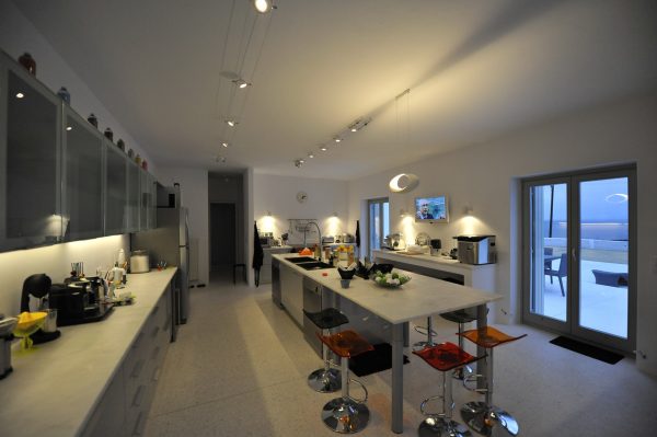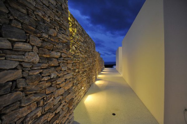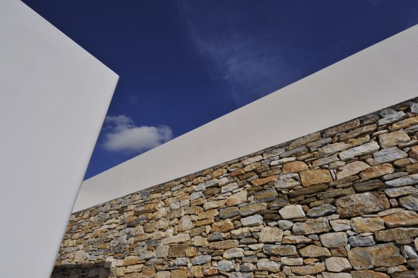 The house has references in the archetypal models of dwelling, with a modern certain output. In the interior the lack of bisector walls and the complete absence of elements such as curtains that would hide the light create a disposal of absolute freedom. Built by simple materials, plaster in white colour, floorings and bathrooms by poured material, the house is distinguished by austerity and simplicity in lines. The water and his light blue sense are present with the swimming-pool, around which exterior spaces unfolds and views to the west and the sea. A space that submits its own pace, dictated by the light and air depending on the day and the season.