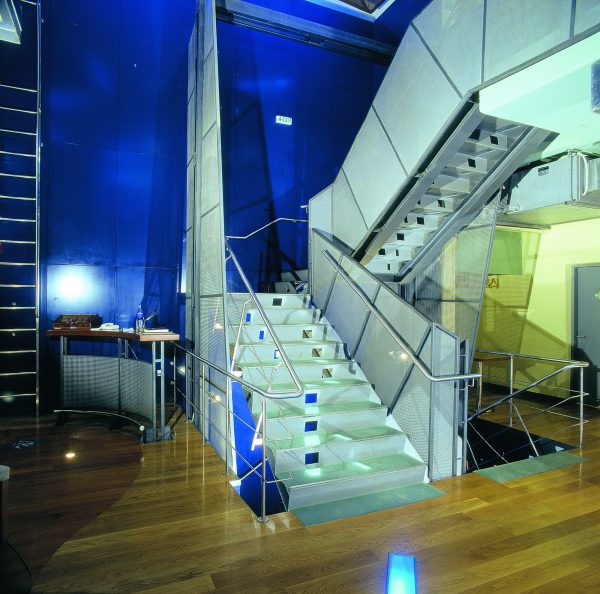 The creation of a backstage ocular vision. Our goal was the simultaneous presence through permeable materials (perforated sheet metal) of the “entrails” of the body, mechanical and hydraulic installations that by their nature are not “elaborate” but are vital elements of the system.