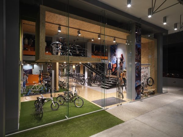 The ground floor contains the main exhibition space with four big thematic categories. City bicycles, Mountain bicycles, race bicycles and finally kids bicycles.