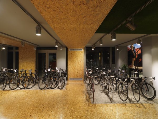 The particular shop is not faced only as bicycle shop but it incorporates in the planning elements, conditions and spaces that a biker experiences.