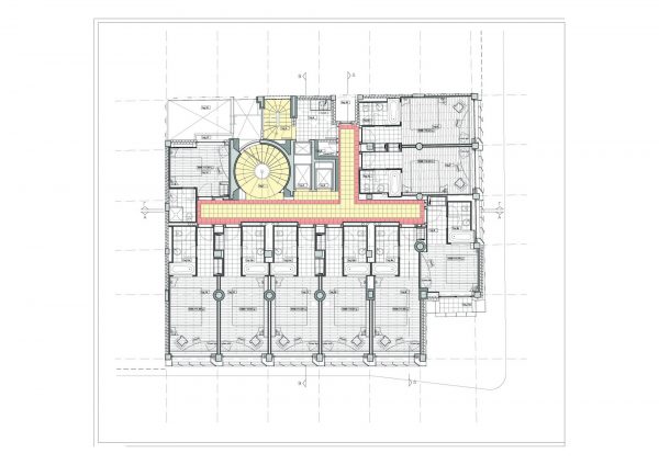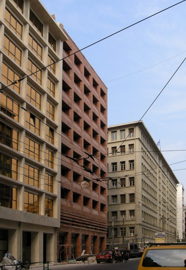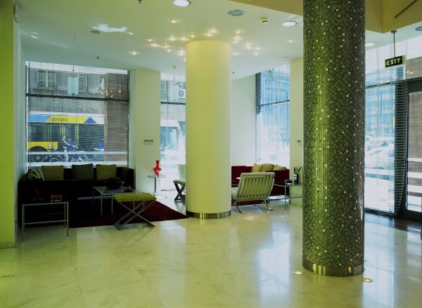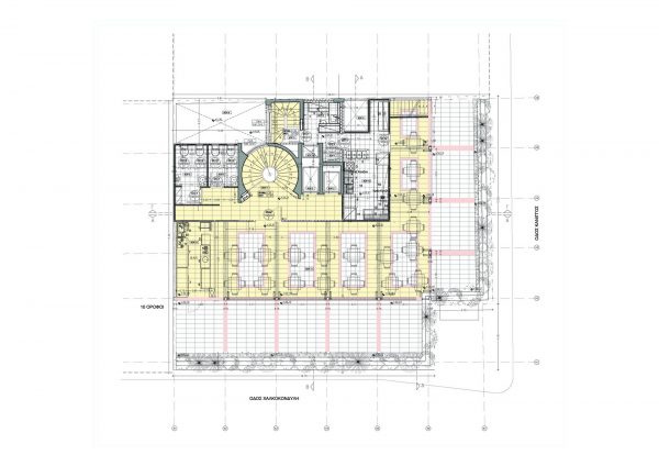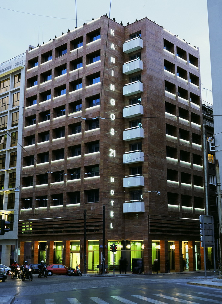 Kaningos 21 hotel is located on the northwest corner of Kaningos Square in the centre of Athens. The existing hotel was constructed in1965 and underwent a structural reinforcement and aesthetic refurbishing in 2004.The architectural approach to this project is sculptural. The thick columns and repetitive, recessed openings are giving the impression that the building has been carved out of a mass of stone. These large openings establish a relationship between each room-cell and the city outside.