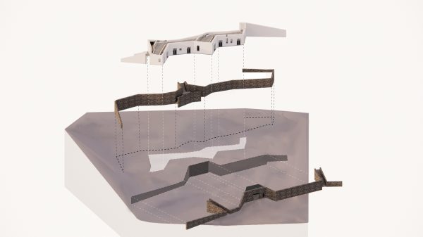 The two houses with a cave guest house are placed on a particularly sloping plot.