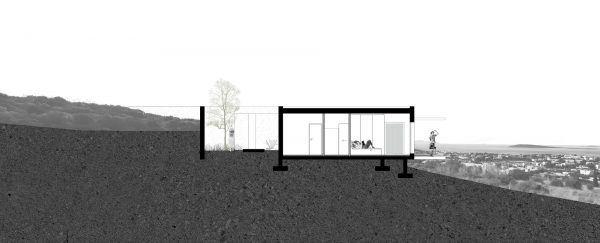 Large transverse walls penetrate the slope. These walls form the back yards and give continuity to the interior of the house towards the landscape.