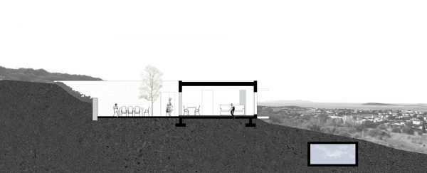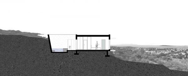 The volumes of the house develop towards the view and project against a low stone wall forming a view to the west. On the one hand they are firmly hooked to the ground and on the other they seem to float towards the view and the natural relief. The same pattern is followed by the intermediate and front yards – balconies that aim at the sea.